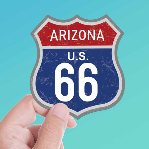Commemorate 100 Years of the Mother Road with this AZ Route 66 bumper sticker designed after a red, white, and blue vintage highway sign. Makes a great southwest souvenir or gift for travel buddies & car lovers.