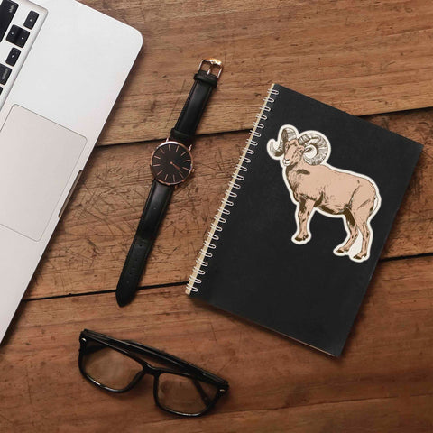 Bighorn Sheep Sticker, 4" wide laptop decal or bumper sticker size. Waterproof vinyl decal for indoor & outdoor use. Made in USA.