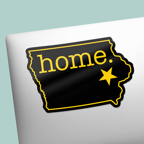 Home Iowa sticker, 4" wide laptop decal or bumper sticker size. Waterproof vinyl decal for indoor & outdoor use. Made in USA.