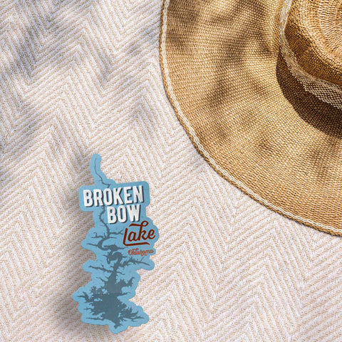 Great Broken Bow Lake bumper sticker for cars, trucks, motorcycles, trailers, roof cargo boxes, boats, or RVs. Perfect waterproof decal for Hydroflask water bottle, insulated thermos, tumbler, or Yeti cooler. Stick it on your laptop, tablet, phone, Kindle, or journal.