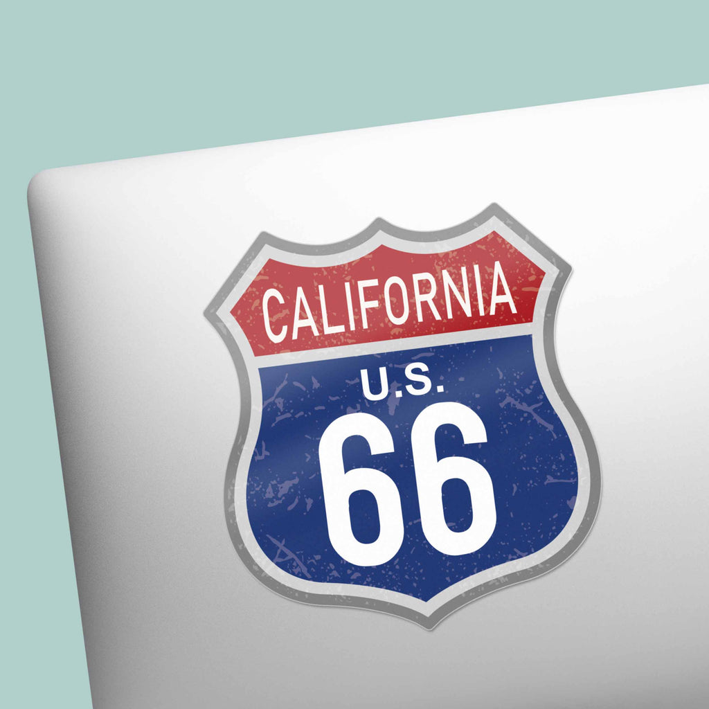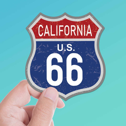 Commemorate 100 Years of the Mother Road with this CA Route 66 bumper sticker designed after a red, white, and blue vintage highway sign. Makes a great SoCal souvenir or gift for travel buddies & car lovers.