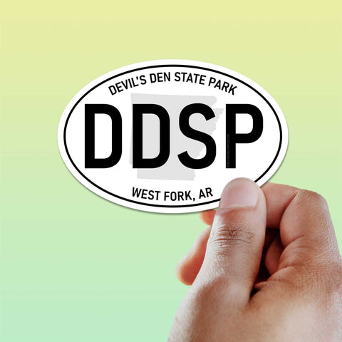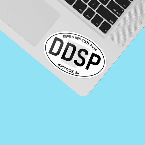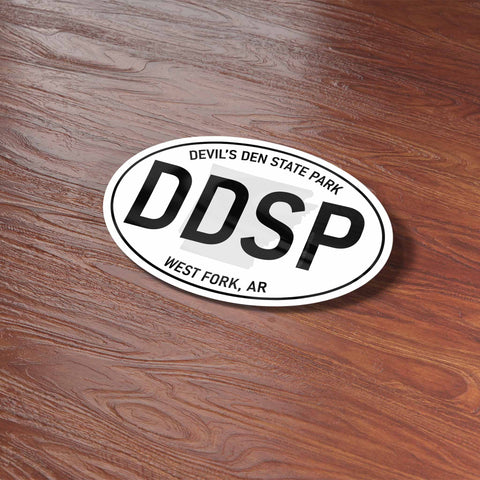 Nestled in the heart of the Boston Mountains, Devil's Den State Park stands as a testament to Arkansas' natural beauty. With its rugged terrain, famous sandstone caves, and 64 miles of hiking trails, this park offers a one-of-a-kind experience for visitors of all ages. Celebrate your adventures in DDSP with a classic black and white white oval Euro sticker.