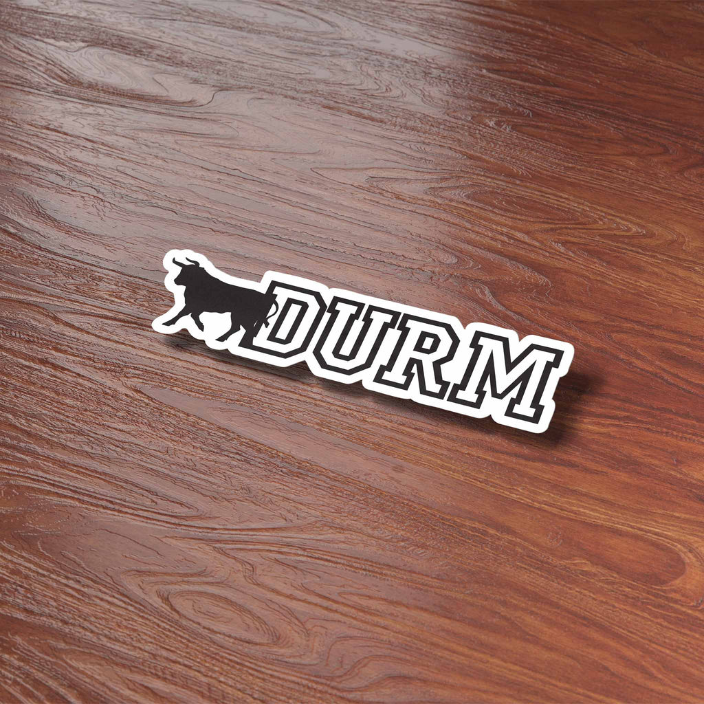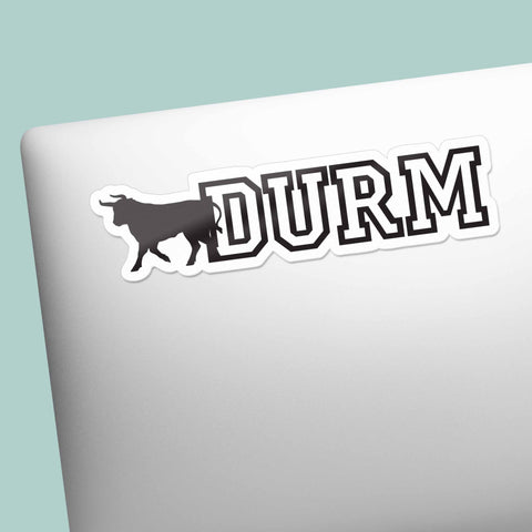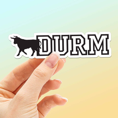 Durm bull Durham North Carolina sticker, 4" wide laptop decal or small bumper sticker size. Waterproof vinyl decal for indoor & outdoor use. Made in USA.