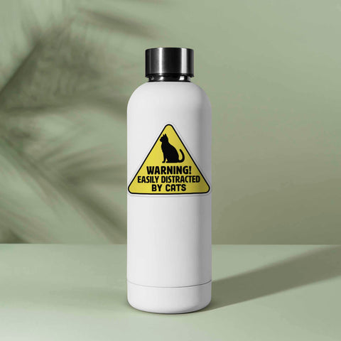 Easily Distracted by Cats quote sticker for water bottle, 3.25" wide laptop decal or small bumper sticker size. Waterproof vinyl decal for indoor & outdoor adventures. Made in USA.