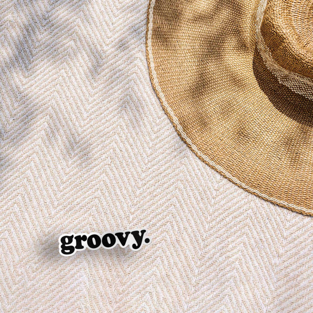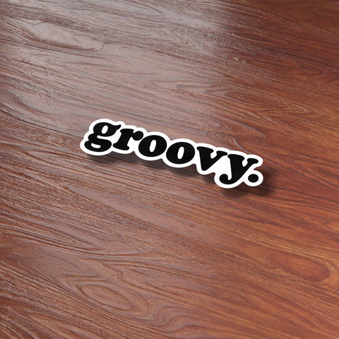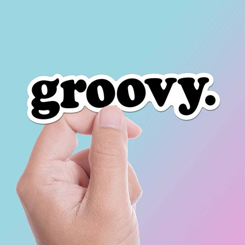 Groovy sticker, 3.5" water bottle & laptop decal size. Durable die-cut vinyl decal with a matte UV-resistant coating. Waterproof & weatherproof for indoor & outdoor use. Made in USA.