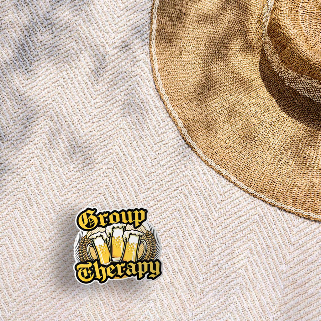 Group Therapy funny beer sticker, 3.25" laptop decal or small bumper sticker size. Waterproof vinyl decal for indoor & outdoor use. Made in USA.