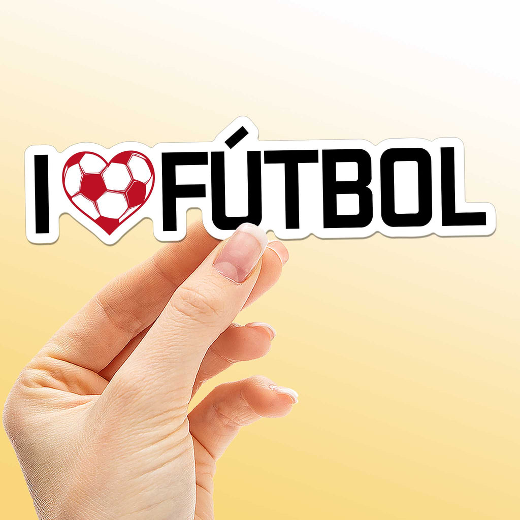 I Love Futbol Soccer sticker, 4.5" wide bumper sticker or large laptop decal size. Waterproof vinyl decal for indoor & outdoor use. Made in USA.