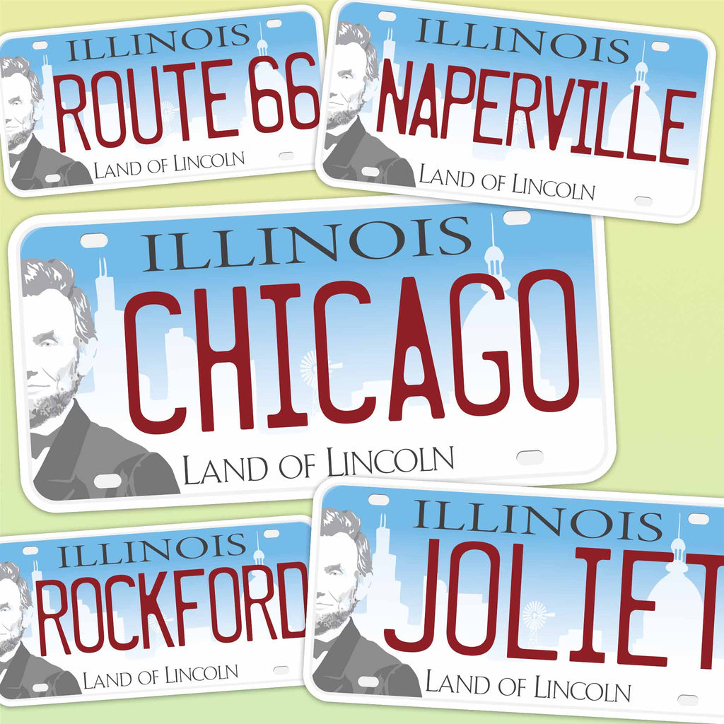 Choose from multiple IL license plate stickers with cities & sayings. If you're looking for a custom sticker for your town, send us a message & we'll add it!