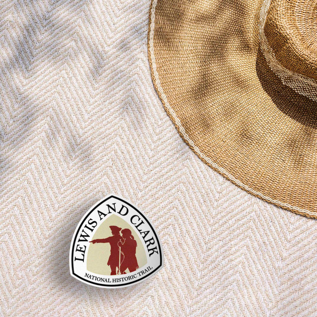 An icon of American history, the Lewis & Clark Trail winds nearly 5000 miles from Pittsburgh to Astoria. Now a National Historic Trail, it passes through great plains and scenic wilderness in 16 states and 60 tribal lands in Pennsylvania, Ohio, West Virginia, Kentucky, Indiana, Illinois, Missouri, Kansas, Nebraska, Iowa, North & South Dakota, Montana, Idaho, Washington, and Oregon. Designed after the trail marker, this cool sticker makes a perfect gift for hikers & history nerds.