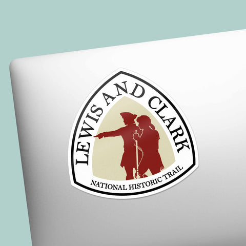 Lewis & Clark Trail Sticker 3.5" wide laptop decal or bumper sticker size. Durable die-cut vinyl decal with a matte UV-resistant coating. Waterproof & weatherproof for indoor & outdoor use. Made in USA.