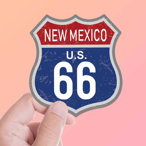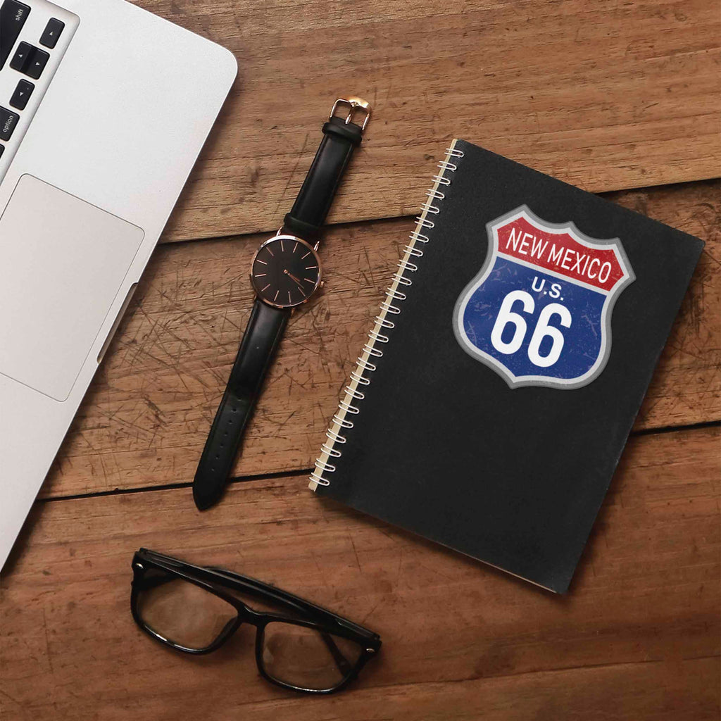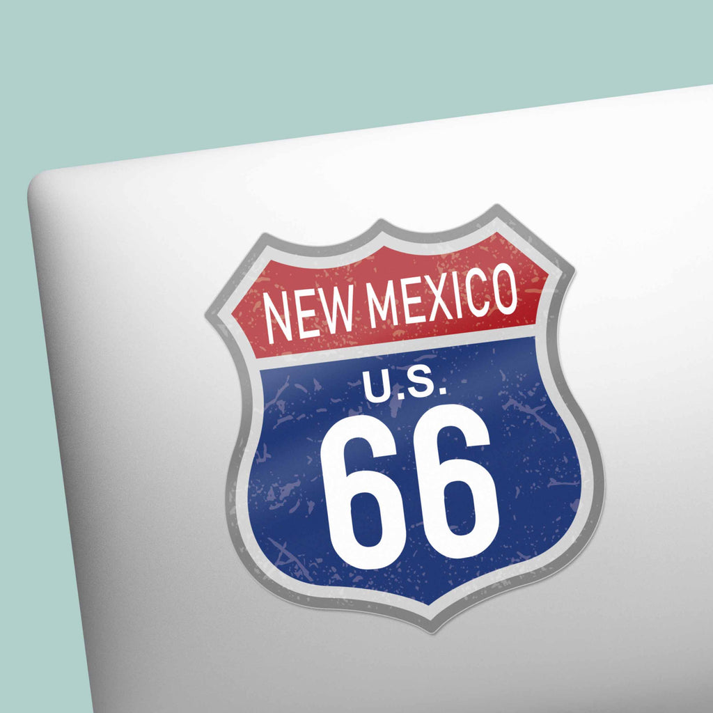 100th Anniversary New Mexico Route 66 sticker, 3.25" tall laptop decal or bumper sticker size. Waterproof vinyl decal for indoor & outdoor use. Made in USA.