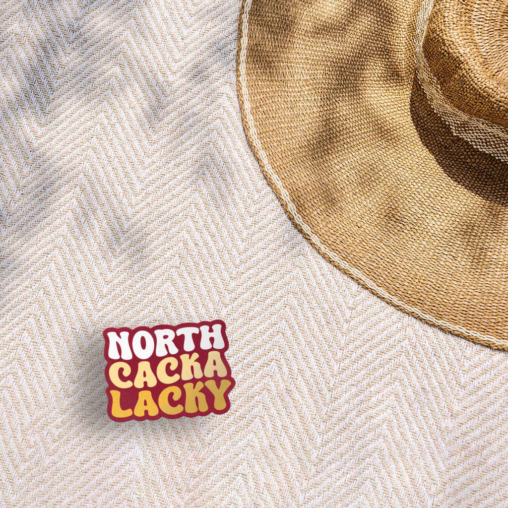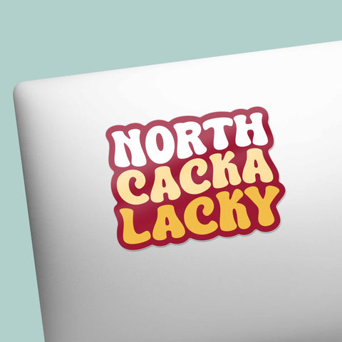 North Cackalacky sticker, 3.25" wide laptop sticker or small car decal size. Waterproof vinyl decal for indoor & outdoor use. Made in USA.