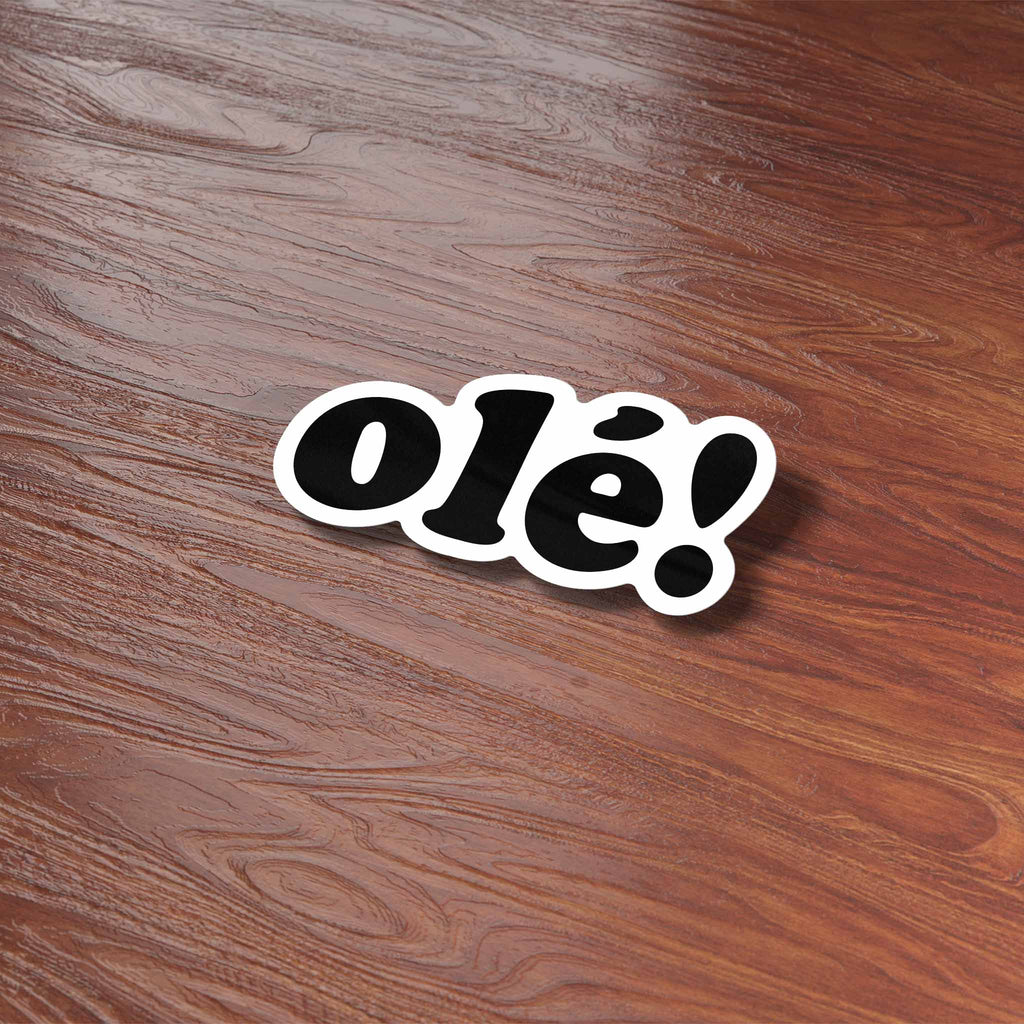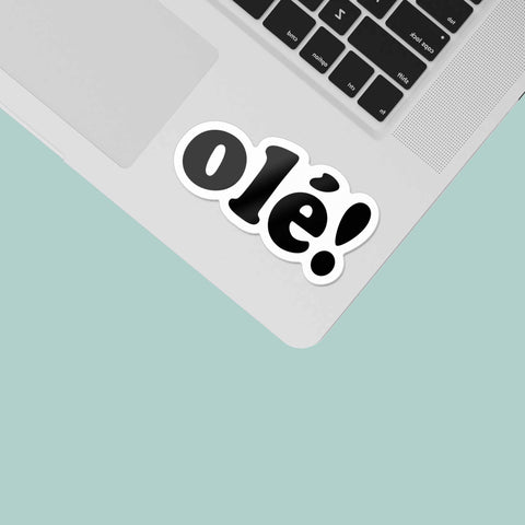 Ole soccer sticker, 3" wide water bottle sticker & laptop decal size. Waterproof vinyl decal for indoor & outdoor use. Made in USA.