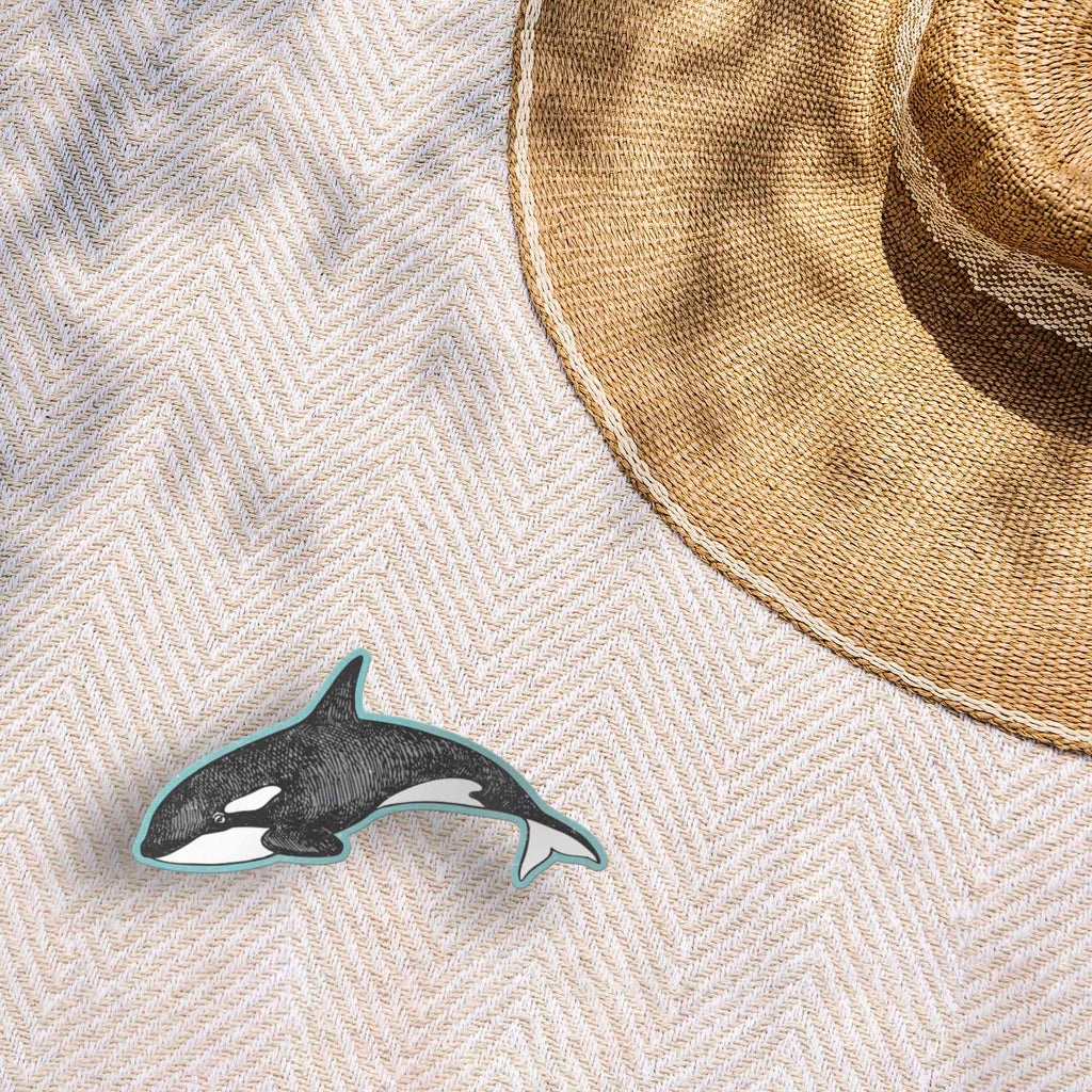Known for their playful nature and hunting in packs, orcas are a delight to watch and experience. Whether you're strolling along the beach, backpacking, tidepooling, whale watching, or ocean fishing, this cute teal & blue killer whale sticker is a great way to remember your maritime adventures.