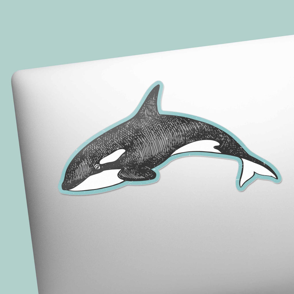 Killer Whale decal, 4.5" bumper sticker or large laptop decal size. Waterproof vinyl decal for indoor & outdoor use. Made in USA.
