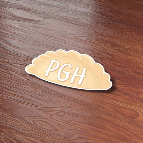 Pittsburgh pierogi sticker, 3" wide laptop decal or mini bumper sticker size. Waterproof vinyl decal for indoor & outdoor use. Made in USA.