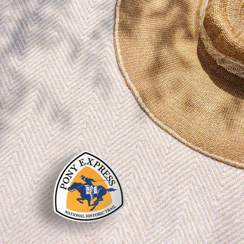 An icon of American history, the Pony Express Trail ran nearly 2000 miles across the Wild West of the 1860s, delivering letters from St. Joseph, MO to Sacramento, CA in just 10 days. Now a National Historic Trail, it passes through great plains, deserts, and scenic wilderness Missouri, Kansas, Nebraska, Colorado, Wyoming, Utah, Nevada, and California. Designed after the blue and yellow trail marker, this cool sticker makes a perfect gift for hikers & history nerds.