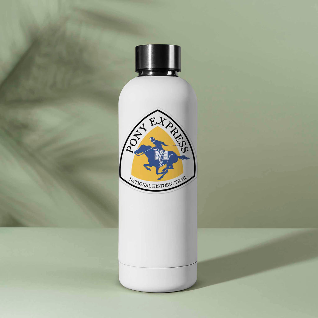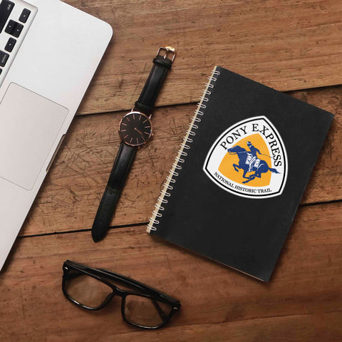 Pony Express Trail Sticker 3.5" wide laptop decal or bumper sticker size. Durable die-cut vinyl decal with a matte UV-resistant coating. Waterproof & weatherproof for indoor & outdoor use. Made in USA.