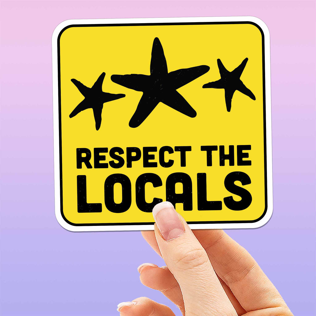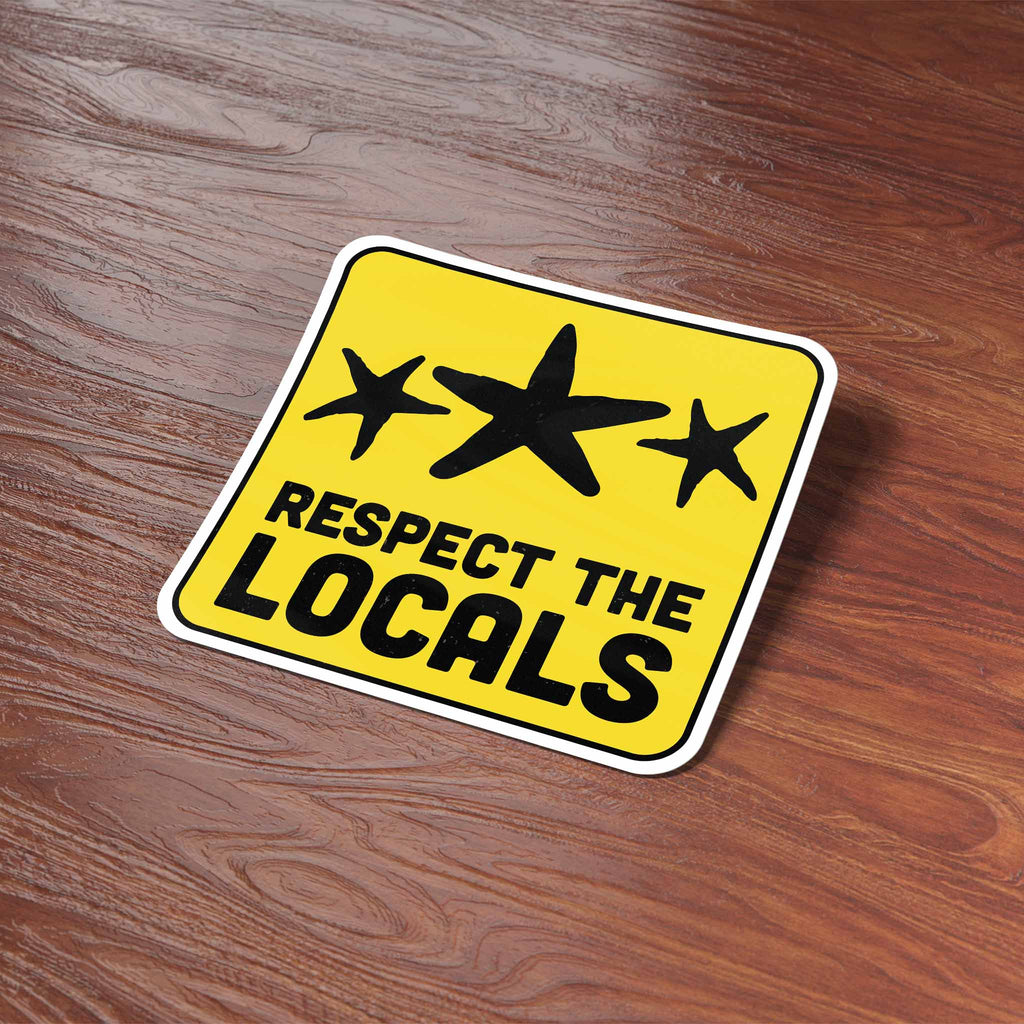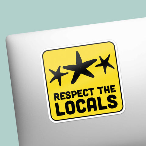 Respect the Locals sea star sticker, 3.5" wide laptop decal or bumper sticker size. Waterproof vinyl decal for indoor & outdoor use. Made in USA.