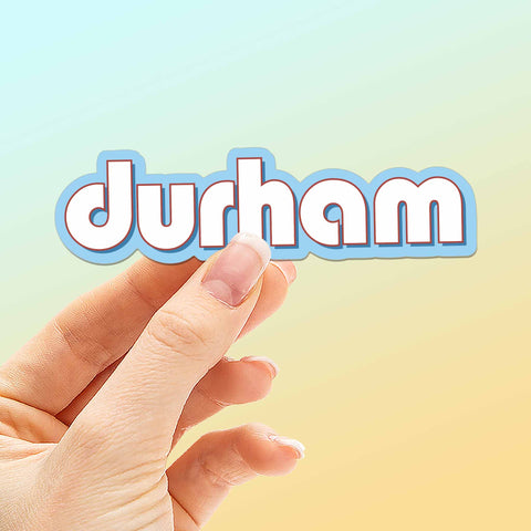 Home to old factories, prestigious Research Triangle universities, and tons of history, Durham is a charming city to call home. Whether you're a student, professor, alumni, or college sports fan, show your love for the Bull City with a cute Durham sticker featuring a cool retro font.