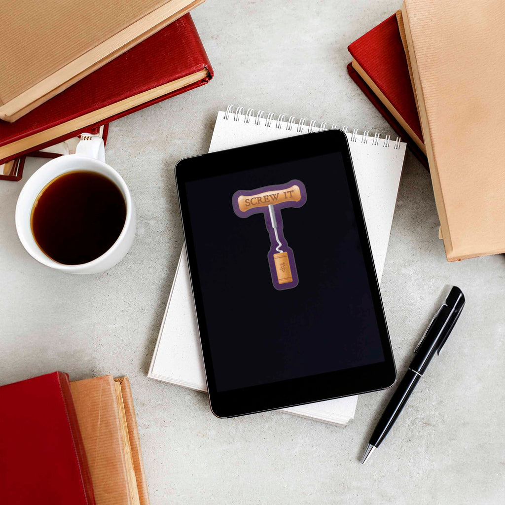 Die cut in the shape of a corkscrew, this funny quote sticker for the busy wine aficionado who, after a hectic day, needs to say "Screw It" and sit down with a glass of their favorite vino. This cute wine decal is a great gift for Mom, Dad, or any sommeliers and wine lovers in your life.