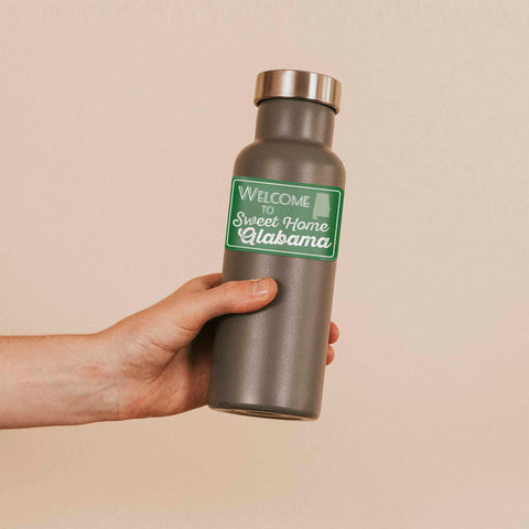 Sweet Home Alabama sticker, 3.5" wide water bottle decal & bumper sticker size. Waterproof vinyl decal for indoor & outdoor use. Made in USA.
