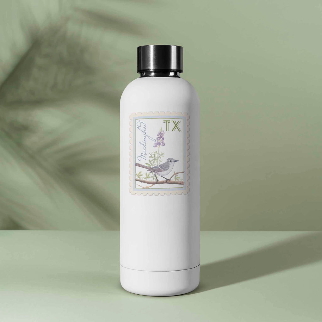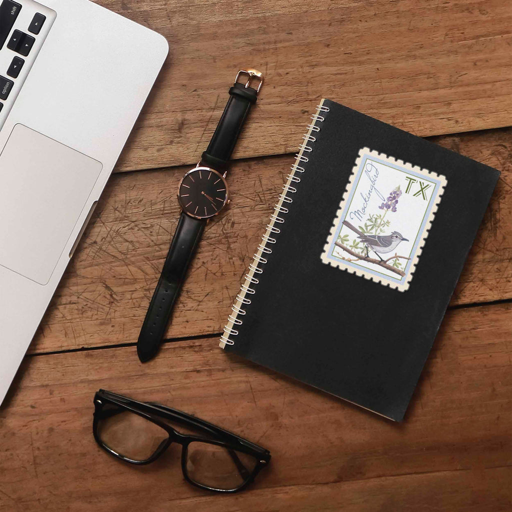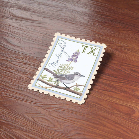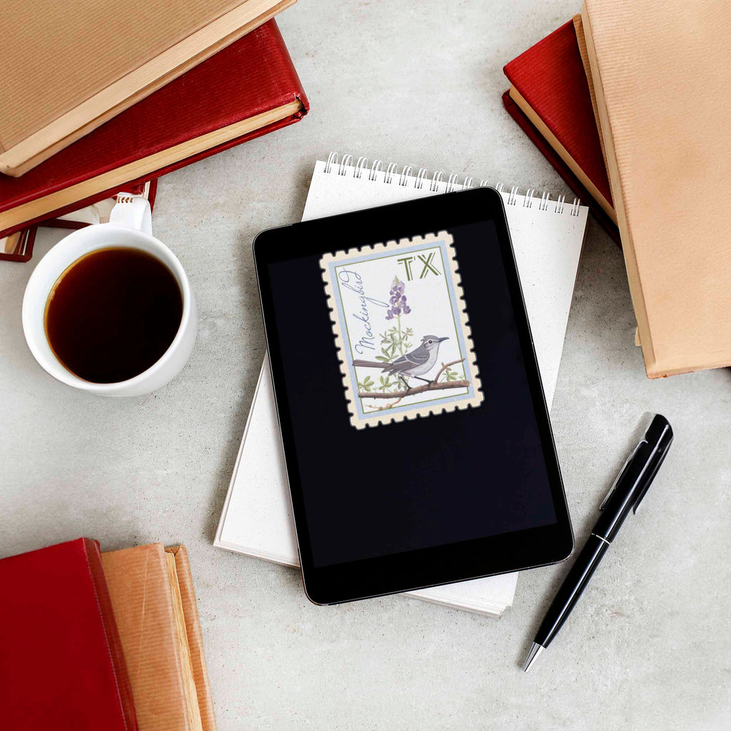 Texas and mockingbirds are inseparable. As the state bird of Texas, Mimus polyglottos is an iconic symbol of the Lone Star State. This southern birdwatching sticker is a great souvenir or Texas gift for visitors to Dallas, San Antonio, Austin, Houston, the TX Hill Country, or any travel destination. Show your Texas pride with a mockingbird and bluebonnet sticker in the shape of a vintage stamp!
