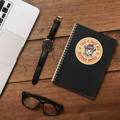 My Second Rodeo bumper sticker, 3" wide water bottle & laptop decal size. Waterproof vinyl decal for indoor & outdoor use. Made in USA.