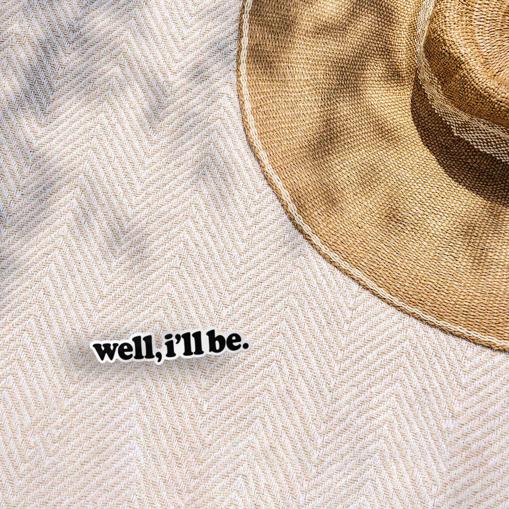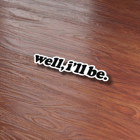Well I'll Be sticker, 3.75" wide laptop decal or mini bumper sticker size. Waterproof vinyl decal for indoor & outdoor use. Made in USA.